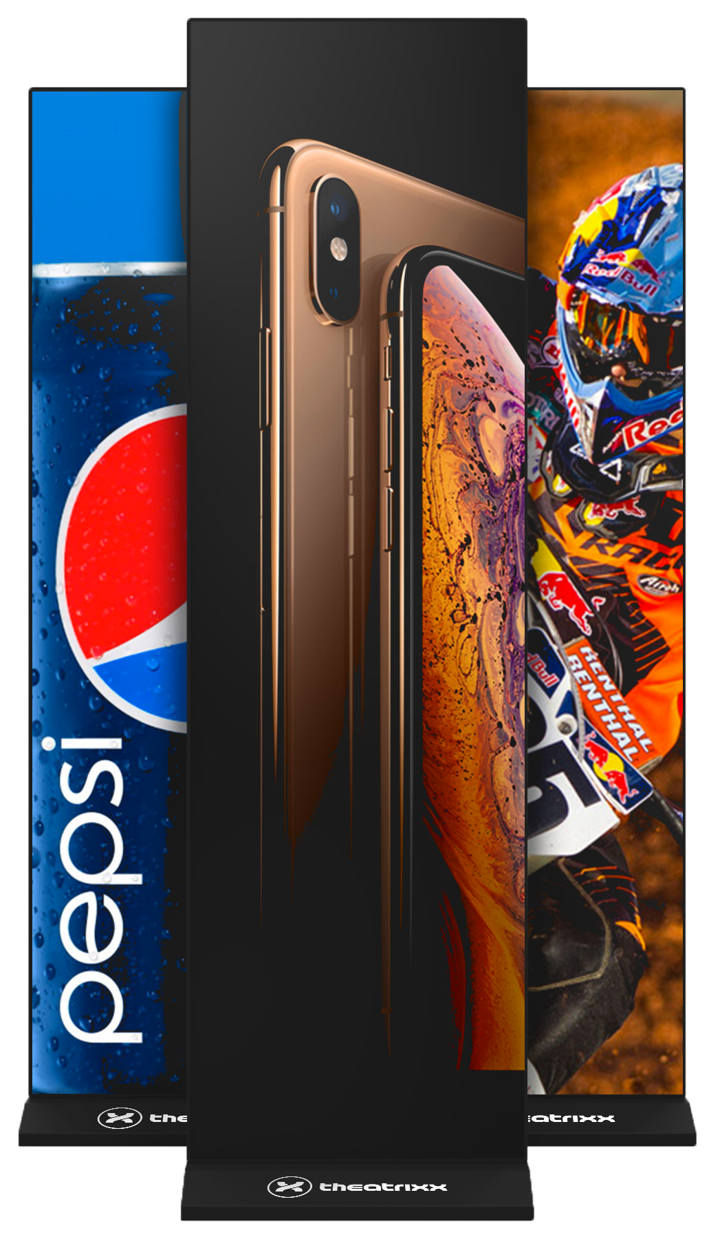 La simplicité et la rapidité d’installation d’une bannière publicitaire conventionnelle combinées avec le dynamisme, la polyvalence et l’attrait visuel d’un écran DEL font du Totem de Théatrixx un outil parfait pour une multitude d’applications de signalétique temporaire. Conçu pour transmettre votre message de façon claire et attrayante, le Totem peut être programmé en quelques instants au moyen d’un téléphone intelligent, et une fois installé, est totalement autonome. Il peut être facilement déplacé grâce à ses roulettes intégrées, et son design minimaliste se fond parfaitement dans n’importe quel décor. Et contrairement à une bannière conventionnelle, le Totem n’est pas limité à une seule image fixe – il supporte des images en rotation et des vidéos pour une présentation visuelle beaucoup plus intéressante.